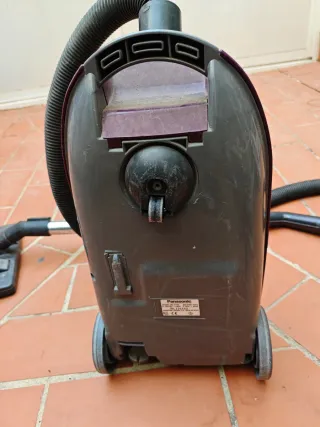 Aspirador de la marca Panasonic en color morado. Funciona bien. No tiene bolsas pero se pueden comprar recambios en cualquier sitio. - Diseño compacto y ovalado. - Manguera flexible negra. - Tubo extensible plateado. - Cabezal de aspiración negro.