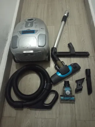 Aspiradora de la marca Solac, modelo 1300W, en excelente estado, casi nueva. Incluye bolsas. - Diseño compacto y moderno. - Manguera flexible y tubos de extensión. - Cepillo principal para suelos. - Accesorios adicionales para diferentes superficies.