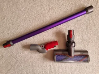 Conjunto de accesorios para aspiradora Dyson. Dyson Aspiradora Acesorios Compatible V7, V8, V10 y V11, 3 acesorios para aspiradora dyson Dyson tubo extensión morado Dyson zonas bajas low reach adapter Dyson cepillo motorizado hair removal vanes funcionando. Marcas de uso ver fotos Se venden todos junto