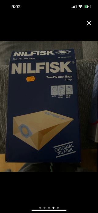Pack de 5 bolsas para aspiradora Nilfisk. - Tipo: Two-Ply Dust Bags. - Modelos compatibles: GM 90, GS 90, GM 80, GS 80, GA 70.