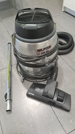 Aspiradora Nilfisk GM 80 de gran capacidad. - Cuerpo metálico. - Ruedas para fácil movilidad. - Incluye tubo de aspiración y cepillo. - Manguera flexible.