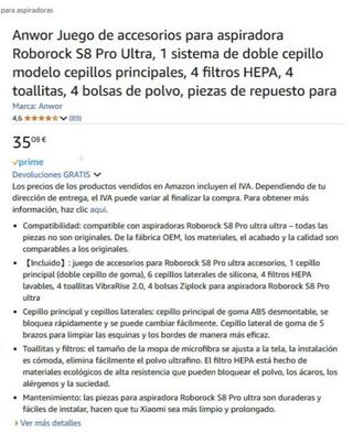 juego de accesorio para aspiradora Roborock S8 pro