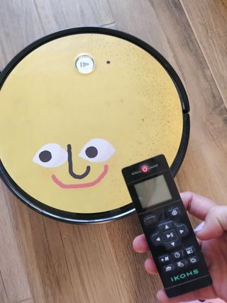 Se vende robot con función aspirador y frega suelo, con mando a distancia y aplicación para android para poder programar el aspirado. Diseño alegre con cara sonriente. Color amarillo. Especial regalo Navidad