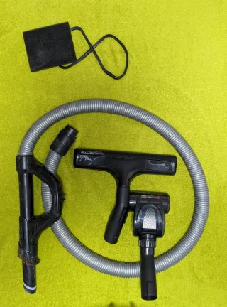 5 asesorios Conjunto de accesorios para aspiradora Bosch Zoo'o. - Manguera flexible. - Cepillo para suelos duros. - Boquilla estrecha. - Cepillo redondo. - Adaptador. SOLO SE A USADO EL PALO DE RIELES PERO MUY POCO