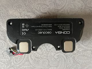 Base de carga para robot aspirador Conga. - Modelo: 05554. - Voltaje de salida: 20.0 V. - Amperaje de salida: 1.8 A. - Voltaje de entrada: 100-240 V. - Fabricado en China, diseñado en España.