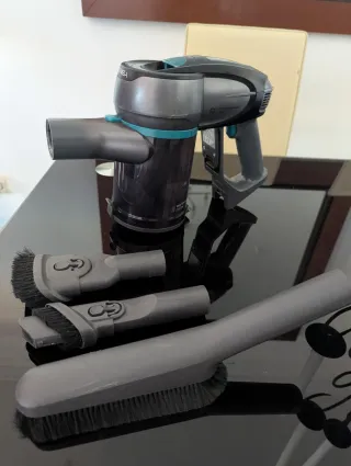 Aspiradora escoba Cecotec en buen estado. - La batería carga correctamente y dura 25/30 minutos en modo normal en modo turbo menos - Incluye todos los accesorios originales - Mango extensible. - Cepillo giratorio - Filtro lavable