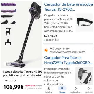 Cargador de batería original para aspiradora Taurus HS-2900. - Modelo compatible: HVCA7291B. Y más en foto 8 -36v - Repuesto original.