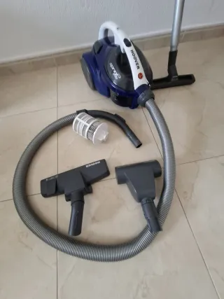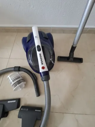 Aspiradora Hoover de color azul con accesorios. 700W - Manguera flexible. - Cepillo para suelos. - Filtro. - Tubo de aspiración.