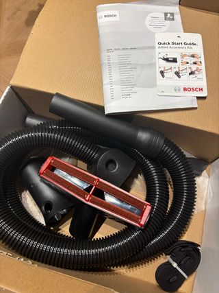 Kit de accesorios para aspiradora Bosch. - Manguera flexible. - Cepillo para suelos. - Tubo de extensión. - Manual de inicio rápido.