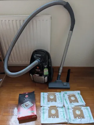 Aspiradora Hoover Telios Plus de 700W con manguera y accesorios. - Manguera flexible - Tubo extensible - Cepillo principal - Cepillos extra - Accesorio para esquinas - 4 bolsas sin usar