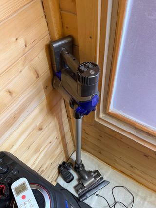 Aspiradora Dyson V8 Animal+ en color azul y gris. - Incluye cargador y soporte de pared. - Potente ya no tiene es para alguien que la quiera reparar
