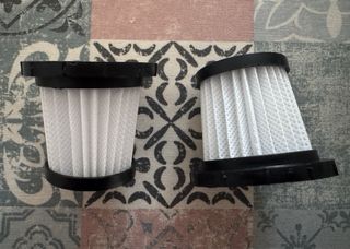 Pack de dos filtros de repuesto para aspiradora VersLife S6. Mantén tu aspiradora en óptimas condiciones. - Filtros de papel plisado blanco. - Aro de plástico negro. - Diseñados para el modelo VersLife S6 sin cable