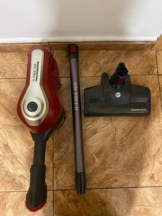 Aspirador de mano y de escoba Hoover H-FREE 100. - Color rojo y plateado. - Tubo extensor. - Cepillo motorizado.