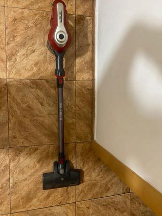 Aspirador escoba sin cable de la marca Hoover, modelo H-FREE 100. Es ligero y fácil de manejar. - Color rojo y gris. - Incluye cargador.