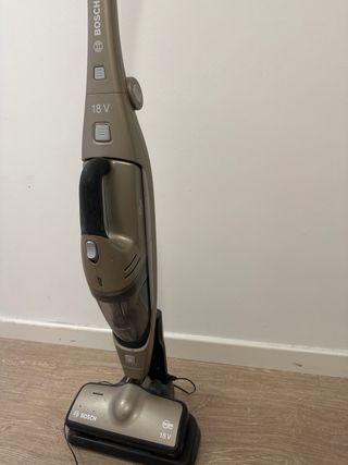 Aspirador de mano inalámbrico de la marca Bosch. - Color gris metalizado. - Voltaje de 18V. - Incluye cargador.