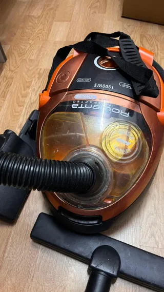 Aspirador Rowenta en color naranja y negro. - Modelo Compacteo. - Potencia de 1900W. - Incluye filtro HEPA. - Sistema Cyclonic.