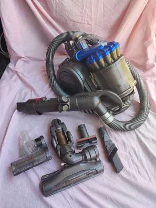 Aspirador vertical Dyson Ball con tecnología ciclónica. - Diseño compacto y ligero. - Ruedas que giran 360 grados. - Mango ergonómico. (Para reparar ,tiene una manguera de succión rota ,por Amazon vale 15€ ,ver última foto ) Se entrega super limpia y desinfectada ni un solo pelo,y algunos accesorios ,motor con muchísima fuerza ,ideal para repararla o piezas