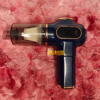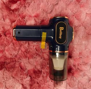 Mini aspiradora portátil de la marca Bellbuy, ideal para llevar a cualquier parte. Su diseño compacto la hace muy manejable. - Color azul marino con detalles dorados. - Incluye filtro. - Depósito transparente.
