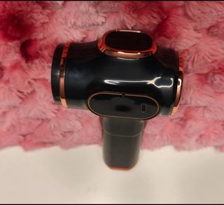 Compacta mini aspiradora de la marca Belibuy en color negro. - Diseño elegante con detalles en color cobre. - Portátil y fácil de usar.