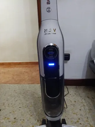 Aspirador inalámbrico de la marca Bosch, modelo Athlet. - Color blanco y negro. - Batería de 25,2V. - Indicador LED de carga. Entrega en mano en Valladolid, Madrid. El aspirador prácticamente no ha sido usado. Tiene el problema de la batería, al haber estado mucho tiempo sin uso se descargo más de la cuenta y dura poco ahora.