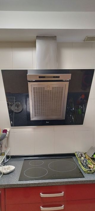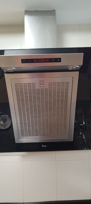 Campana extractora Teka en perfecto estado. - Diseño en diagonal elegante y moderno. - Color acero inoxidable y cristal negro. - Sistema de extracción eficiente. - Fácil de limpiar. - Funciona perfectamente. No hago rebajas. Se entrega desinstalada, por lo que no se puede probar.