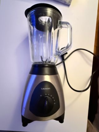 Licuadora de la marca Lauson con jarra de cristal. - Jarra de cristal. - Base plateada y negra. - Selector de velocidad con 6 posiciones.