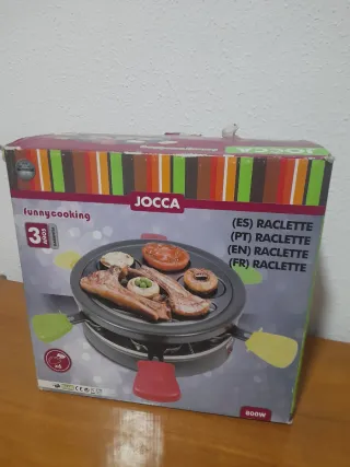 Raclette JOCCA para 6 personas, ideal para disfrutar en casa. - Potencia de 800W. - Diseño compacto y funcional. - Incluye 6 paletas.