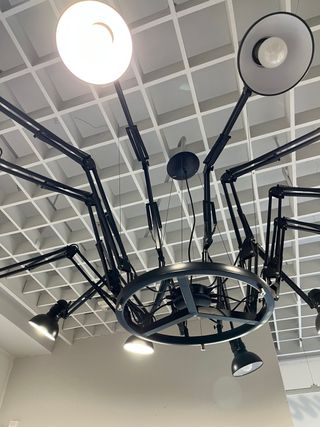 Lámpara de diseño con múltiples brazos articulados, ideal para crear un ambiente único. Su estructura permite ampliarla y adaptarla a tu espacio. - Estructura metálica negra. - Múltiples puntos de luz ajustables. - Diseño moderno y versátil.