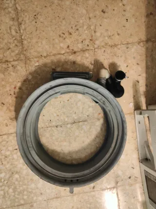 Goma de escotilla para lavadora y secadora Bosch Logixx 7/4. Se despieza por avería en trasera de tambor. Se vende lavadora completa en otro anuncio o despiece. Nunca ha tenido fugaz y está en buenas condiciones. - Material de goma flexible.