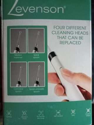 ✓ Limpiador de oídos Levenson, un dispositivo 4 en 1. ✓ NUEVO!!! ✓ Es de color blanco y negro, y viene con una base. ✓ Limpiador de oídos vibrante. ✓ Con luz LED ✓ Incluye 4 cabezales y sitio en la base para colocar.