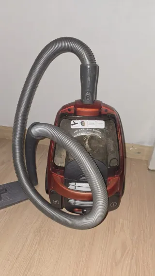 Aspiradora de trineo de 440W, muy potente, en llamativos tonos rojo y gris. Su diseño compacto la hace fácil de manejar. - Ruedas para un desplazamiento sencillo. - Manguera flexible. - Depósito transparente. - Ligera. - Sin bolsas (tiene un deposito muy amplio) Su potencia la hace factible para todo tipo de suciedades.