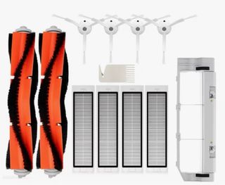 Kit de repuestos para robot aspirador Xiaomi. - Dos cepillos principales. - Cuatro filtros HEPA. - Cuatro cepillos laterales. - Herramienta de limpieza.