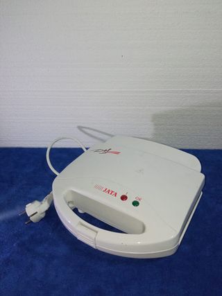Se vende sandwichera eléctrica JATA, en buen estado de uso y funcionando sin problemas. Ideal para preparar sándwiches, bocadillos calientes y tostadas de forma rápida y cómoda. - Diseño compacto y fácil de usar. - Indicadores luminosos de encendido y listo. - Superficie antiadherente para una limpieza fácil.