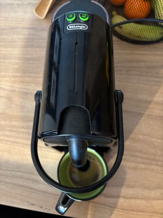 Cafetera Nespresso DeLonghi en perfecto estado. Diseñada para preparar deliciosos cafés. - Color negro brillante. - Marca Nespresso. - Modelo DeLonghi.