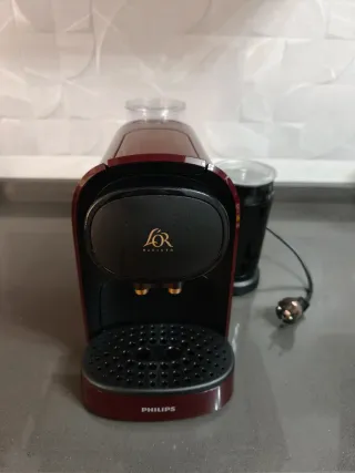 Cafetera L'OR Barista de Philips en color rojo. Diseñada para preparar deliciosas bebidas de café. - Diseño elegante y compacto. - Bandeja recogegotas extraíble.