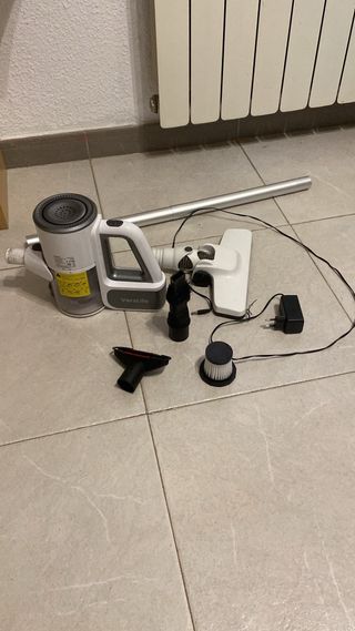 Aspiradora VersLife S6PRO, un modelo sin cable con gran potencia de succión. - Potencia de succión de 30KPa. - Incluye varios accesorios para diferentes usos. - Cargador de corriente. - Filtro de recambio. - Muy poco uso. - Muy buen estado. * No realizo envío. Recogida en domicilio.