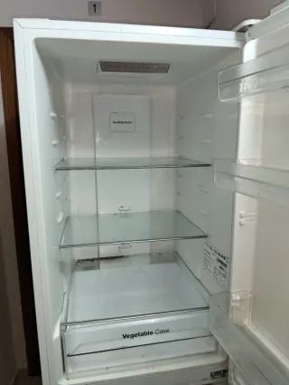 Nevera combi en color blanco. Cuenta con dos estantes de cristal y un cajón. - Estantes de cristal. - Cajón para verduras. -le hace falta una limpieza ya que lleva tiempo parada -falta carga de gas,enciende bien pero al rato deja de enfriar -precio negociable