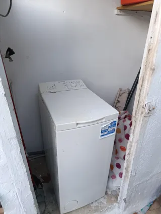 Lavadora de carga superior de la marca Indesit. Ideal para piezas o para quien sepa repararla. Precio negociable - Color blanco. - Tambor de acero inoxidable. (Aboyado)