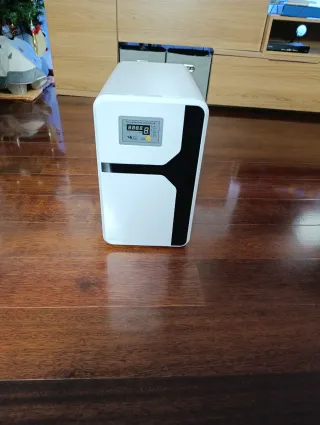 Sistema de tratamiento de agua Hidrotech. - Diseño moderno en color blanco. - Panel de control digital con pantalla. - Acabado con detalles en negro.