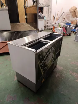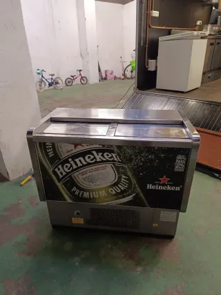 Botellero refrigerado con diseño de Heineken y dos puertas. Ideal para mantener tus bebidas frías. - 2 puertas - Diseño frontal de Heineken. - Parte superior de acero inoxidable. - Lijero, ideal para eventos y hostelería