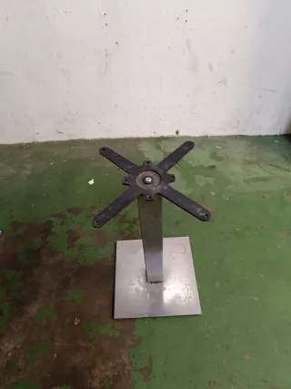 Base metálica para mesa de hostelería, ideal para bares y restaurantes. - Base cuadrada de acero. - Columna central rectangular. - Soporte superior en forma de cruz. - Robusta y resistente Dispongo de 2 unidades, precio por unidad