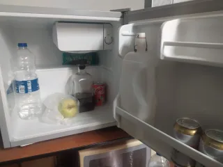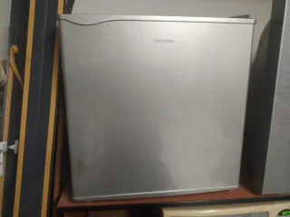Mini frigorífico de la marca ANSONIC. Ideal para espacios pequeños. - Color plateado. - Diseño compacto.