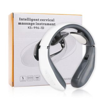 Masajeador cervical inteligente. Emite impulsos eléctricos en los electrodos metálicos adaptables. Recargable para usar de forma inalámbrica. , Medidas: 13,8 cm de ancho x 14,2 cm de largo. Modelo: KS-996-2C. , Ref: 13680.