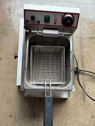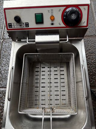 Freidora de acero inoxidable, ideal para uso profesional. - Cubeta extraíble para facilitar la limpieza. - Termostato regulable. - Indicador luminoso de encendido y temperatura.