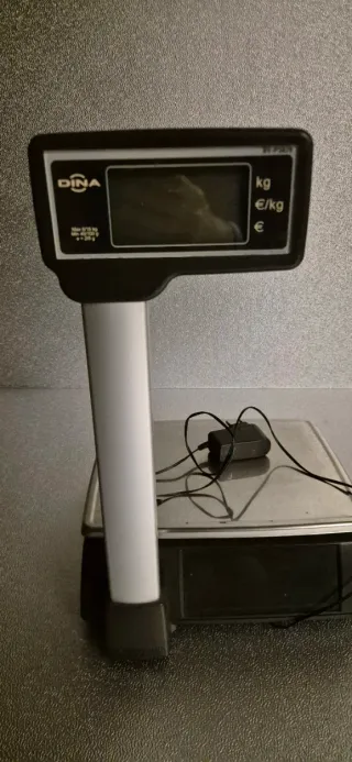 Báscula comercial Dibal con pantalla digital y teclado numérico. - Modelo: BV-P3828 - Capacidad máxima: 15 kg - Precisión: 5 g - Unidades: kg, €/kg, € - Funciona perfectamente.