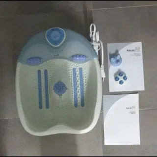 Masajeador de pies en buen estado. Es de color blanco y azul. - Incluye función de burbujas.
