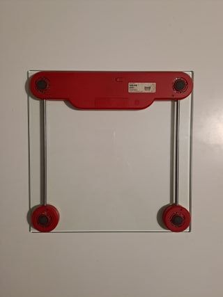 Báscula digital de vidrio templado en color rojo. - Diseño moderno y elegante. - Pantalla LCD de fácil lectura. - Indicador de batería baja. - Capacidad máxima de 180 kg (396 lbs).