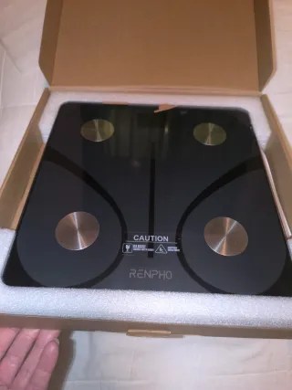 Báscula digital Renpho para el hogar. Diseño moderno y elegante. NUEVA A ESTRENAR. Embalaje impoluto, ideal para regalo de Reyes. - Superficie de cristal templado. - Plataforma amplia. - Peso, IMC,... - Indicador de CAUTION y GLASS.