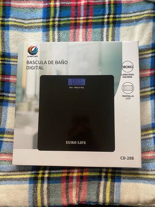 Báscula de baño digital Euro Life. A ESTRENAR!!! - Peso máximo 180 kg - Pantalla LCD con luz - Modelo CD-28B. - Auto On-Off - 2 pilas AAA incluidas Con este artículo no quedo en persona, sólo hago envíos. Envío y comunicación sólo mediante Wallapop.