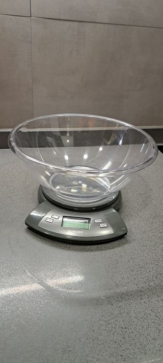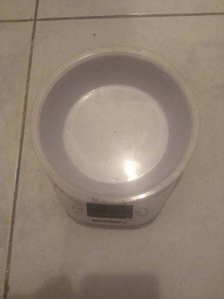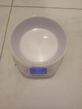 Báscula de cocina digital, impecable. - Capacidad máxima: 5000g. - Precisión: 1g. - Funciones: tara y unidad.